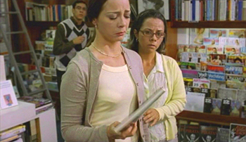 Inhalt: Pedro ein etwas nachlässig gekleideter 30jähriger, betritt eine Buchhandlung, die seine Aufmerksamkeit vor allem wegen der gut aussehenden Verkäuferin erregt hat. Belanglos streift er im Buchladen herum, stets das junge Mädchen an der Kasse im Augenwinkel behaltend. Der einzige Kunde verlässt den Laden und beide sind fast alleine ……